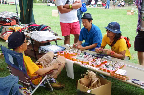 “釣りキチ三平世代”がたくさん集まってルアー談義をしながら“日頃の疲れをいやす”、大人な感じのイベントですが、まったりとして心地いい時間を、一ファンとしても過ごさせてもらいました。チャリティーオークション大会では名品「ミスティー」3個セットを500円で入札! よっしゃーという感じでした(うらやましい景品がもらえるジャンケン大会では負けが続きくっそーでした)。