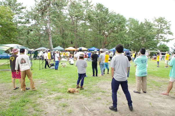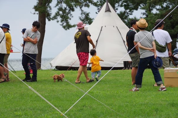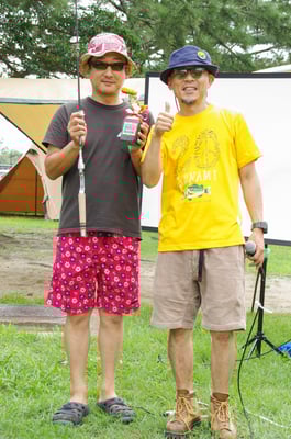 小誌創刊号(01号)のベイトリールの特集に寄稿いただいた元木正実さんの「津波ルアーズ」が、20周年を記念するイベントを開催されました。北湖東岸のマイアミ浜キャンプ場が会場でした(午後から釣り大会の表彰式が始まると聞き、体験トローリングの会場だった大浦からのダブルヘッダー取材を敢行しました)。