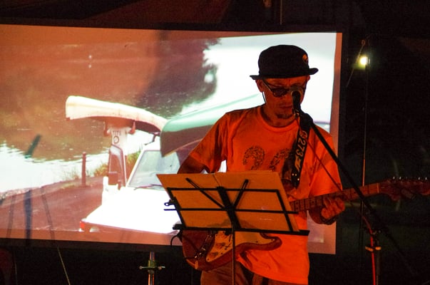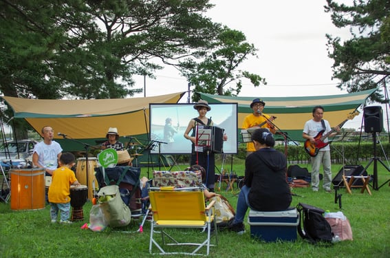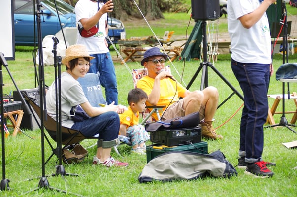 夕方からは二つのバンドによるライブもありました。元木さんは若い頃からロックを心棒しておられますが、釣りのイベントで演奏するのは激しいロックはむしろ少なくて、現場にいあわせた人がいい気持ちになって踊りだしたくなるような曲が多いです。もしくはフィールドで耳にすると一層心に沁みる、釣り心あふれる曲もたくさん演奏されました。