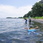 琵琶湖は、海とは違って淡水なので、遊んだ後でもサラサラです。令和の時代でも十分泳げることに感動します。