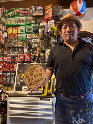 店主の橋本さんは昭和50年のお生まれで、京都で育った少年時代から、いつか釣具店を経営してみたいという夢をずっと持っていたそうです。京都の美大を卒業後はデザイナーとして仕事してきましたが、数年前に写真家の奥様が独立するタイミングで、フォトスタジオと隣接するバー「百万遍PUBBAR」をオープン。昨年の秋に、ついにその一角を釣具店にしちゃったらしいです。